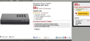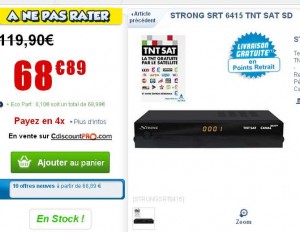 Si vous recevez mal les chaines de la tnt , ou alors si vous desirez les recevoir dans votre residence secondaire en Espagne, Portugal , Italie ou un autre pays d’Europe, il vous faut un recepteur de tnt par satellite .. Pour cela offre interessante chez darty qui propose le recepteur tntsat strong SRT6415 à 55 euros port inclu ..