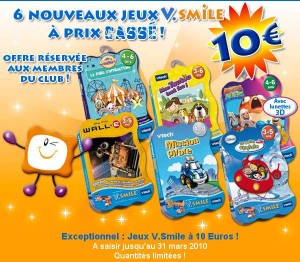 6 jeux VTECH SMILE à 10 euros l’un