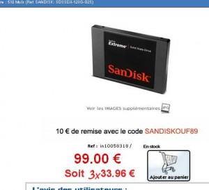 Attention, le disque dur est affiché à 99 euros, il faut donc saisir le code reduc SANDISKOUF89 pour que le prix passe à 89 euros