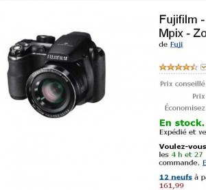 Super prix sur amazon, si vous êtes à la recherche d’un nouvel appareil photo : en effet l’appareil bridge Finepix S4200 est à 101  euros seulement .. En effet vendu 151  euros , il fait l’objet de 50 euros de remise immédiate en saisissant le code promo « IKPYCVBD » … Appareil photo qui semble très bien avec un super zoom 24x … A noter que contrairement à beaucoup d’appareils, il fonctionne avec des piles standards (4 piles AA ) .. Ce qui peut être plus pratique pour éviter de tomber à plat .. des piles AA étant faciles à trouver ..