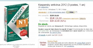 Votre antivirus vient bientôt à expiration et vous avez plusieurs pc à protéger ? Bonne affaire dans les ventes flash sur amazon qui propose l’anvitirus kaspersky 2012 3 postes avec 1 an de mise à jour pour 19 euros port inclu ..