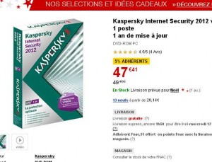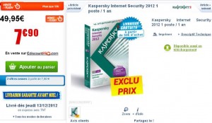 Si vous avez besoin d’un antivirus, bonne affaire sur cdiscount qui propose à moins de 8 euros la version 2012 de l’antivirus Kaspersky Internet Security .. Version pour 1 poste / 1 an ..