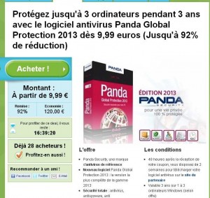 9.99 euros seulement l’anvirus global protection 2013 pour 1 pc et 3 ans de mise à jour, 12.99 euros pour 2 pc et 15.99 pour 3 pc ..