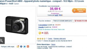 En effet un vendeur pro propose le canon powershot A800 à 35.69 euros + 6.4 euros de frais de port soit donc un prix total de 42.09 . euros ..