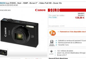 Si vous êtes à la recherche d’un nouvel appareil photo compact, prix interessant sur rueducommerce pour le canon ixus 510hs .. Cet appareil photo qui a la particularité d’etre wifi et permettant ainsi de transferer facilement ses photos est soldé à 128.88 euros livraison incluse en point relais ..