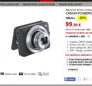 Appareil photo Canon Powershot N à moins de 100 euros ( 12mp , wifi, gps, zoom x8 ) contre 200 ailleurs