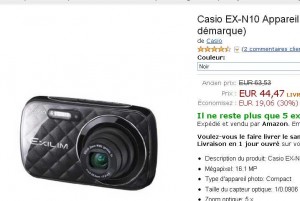 Vous etes à la recherche d’un appareil photo pas cher pour prendre vos photos de vacances ? Dans les soldes sur amazon il reste encore quelques exemplaires d’un appareil photos compact Casio à moins de 45 euros .. 44.77 euros livraison incluse précisement le Casio EX-N10 qui dispose d’un capteur de 16 millions de pixels, zoom optique X5 et qui dispose d’une batterie plutot que des piles ce qui est plutot rare pour un appareil à ce prix…