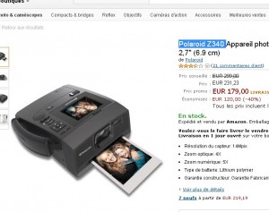 179 euros en vente eclair sur amazon, l’appareil photo numérique polaroid z340 … Appareil photo numérique qui permet d’imprimer directement ses clichés avec son imprimante integrée…