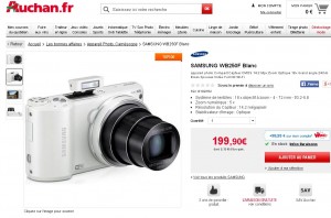Voir cet appareil photo samsung en blanc sur le site auchan