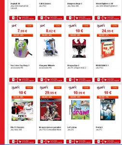 bon plan jeux videos sur auchan.fr : depuis 10 heures le 14/01 il y a la deuxieme demarque des soldes avec des jeux videos à prix ultra interessants : Fifa11 pour xbox 360 est ainsi vendu 10 euros , duke nukem forever , brink egalement, portal2 pc aussi…