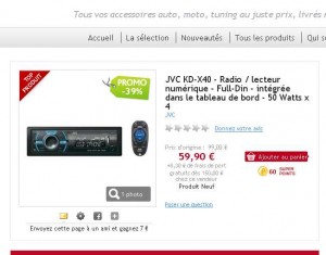 Autoradio JVC KAD X40 à 68.20 euros port inclu