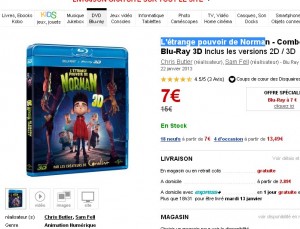 Un blu ray 3d d’animations pas cher dans les soldes de la fnac : 7 euros le blu ray L’etrange pouvoir de norman …