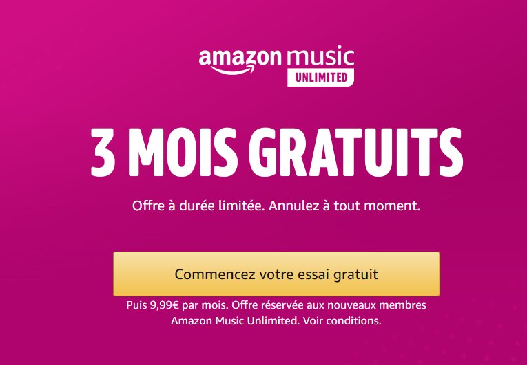 3 mois gratuits à Amazon Music Unlimited !! 50 millions de titres disponibles !