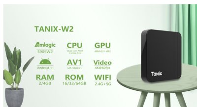 La Tanix W2 est une box sous android 11 , elle possede deux ports usb .. elle est normalement équipée d’un processeur amlogic s905 de 2go de ram et de 16go d’espace de stockage …