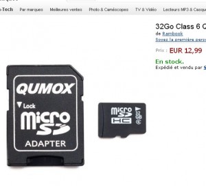 bon plan carte mémoire : micro sd 32go classe 6 à 13 euros