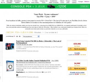 Tres bon prix car on peut voir par exemple sur amazon le pack PS4 + DriveClub + The Last of Us à 439 euros … Là on paye donc 59 euros tout en ayant en plus le jeu The Eldes Scrolls Online Tamriel Edition  qui vaut plus de 50 euros ..