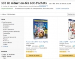 Bon plan pour acheter des dvd , blu ray avec une offre jusqu’au 1 er avril 2018 sur le site amazon : pour 60 euros d’achats au moins en blu ray , dvd parmi une selection, on a 30 euros de réduction en utilisant le code promo « 30P60. »…