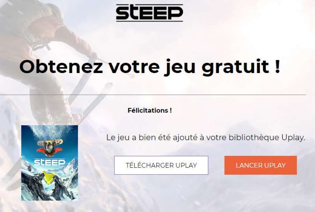 Bon plan jeu video PC : STEEP d’UBISOFT gratuit !