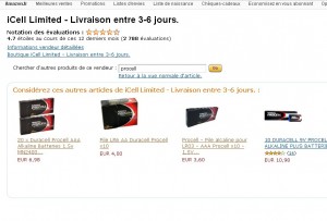 Bon prix pour des piles duracell procell .. La gamme « pro » de la marque duracell … Sur amazon, aupres du vendeur tiers icells, on peut acheter port inclus : 10 piles AAA pour 3.5 euros, 20 piles AAA pour 6.98 , 10 piles AA pour 4.6 euros ou encore 10 piles 9V pour 10 euros …