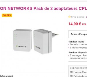 14.9 euros les deux boitiers cpl 500 mbits dans la deuxieme démarque des soldes sur pixmania .. Il y a par contre 2.99 euros de frais de port pour une livraison en point relais ..