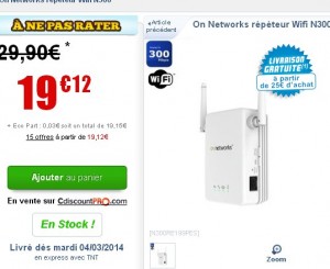 Vous désirez améliorer la portée de votre reseau wifi ? Pour que vous puissiez capter le reseau dans des pieces où cela n’etait pas le cas ? Ou alors améliorer le débit ? Bonne affaire sur cdiscount qui propose un répéteur à 19 euros seulement .. Repeteur de la marque onnetworks ..
