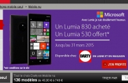 nokia-530-830Offre concernant les smartphones nokia lumia chez darty :  avec pour un lumia 830 acheté , 1 lumia 530 offert…