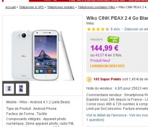 Bon plan smartphone: wiko cink peax 2 à moins de 125 euros