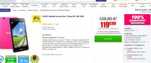 Super affaire pour une tablette tactile avec l’acer iconia one 7 pouces à 119 euros sur cdiscount mais 100% remboursée en deux bons d’achats ..