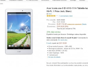 Bon plan pour une tablette android avec l’acer iconia One 8 pouces en vente flash à 119 euros le 15 juin et avec une offre de remboursement différée que l’on peut faire en plus ..
