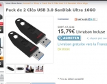 Toujours des prix interessants pour des clés usb sur le site zoombits … On peut voir ainsi un lot de deux clés usb3 de la marque sandisk à 15.79 euros… Deux clés de 16go rapide donc ..
