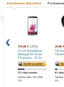 Bon prix pour le LG G3 … 399 euros dans les ventes eclairs amazon du 22 septembre … Smartphone 5.5 pouces, 4G , quad core 2.5 ghz , 2go de mémoire vive….