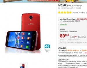 Bon prix smartphone 4g : l’infinix race jet à moins de 95 euros