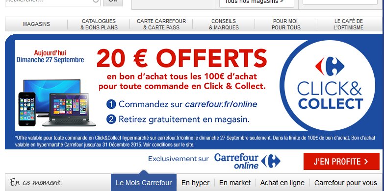 Il faut cependant choisir la livraison click and collect en hypermarchés ..