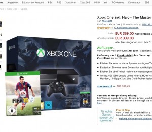 bonne affaire car par exemple sur amazon France, le pack xbox one halo masterchief seul est à 379 euros … et fifa 15 pour xbox one coute 50 euros … On gagne donc 80 euros …
