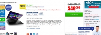 Bonne affaire pour ceux qui recherchent un ordinateur portable bien équipé : sur cdiscount , on peut voir un pc portable 17 pouces de la marque Lenovo avec un processeur core i3 qui beneficie de 50% de remboursés sous forme de bon d’achat ..