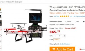 Super affaire semble t il pour un drone : 72 euros seulement le drone WLTOYS V686G vendu par le magasin européen de gearbest …