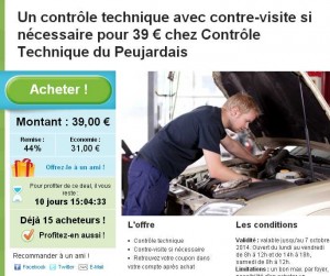 Encore un super prix pour un controle technique auto cette fois ci pour les gens se trouvant dans le secteur de bordeaux : 39 euros le controle technique + l’eventuelle contre visite proposé sur groupon dans un centre se trouvant à peujard au nord de Bordeaux pas loin de saint andré de Cubzac ..