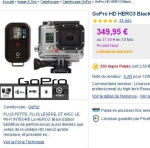 Camera go pro hero 3 black à 329 euros (le 28/08)