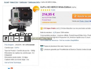 Camera Go Pro Hero 3 white edition à moins de 195 euros (faire vite)