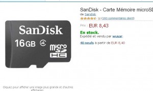 Si vous avez besoin d’une carte mémoire micro sd pour votre smartphone ou encore votre tablette, bonne affaire du coté d’amazon par l’intermediaire d’un vendeur tiers : en effet on trouve pour 7.69 euros une carte micro sd hc Sandisk de 16Go ..