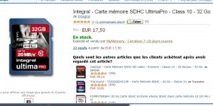 Carte mémoire Sd 32go Classe 10 à 17.50 euros livraison incluse
