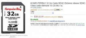 Si vous cherchez une carte mémoire SD rapide pour votre camescope ou encore appareil photo , bonne affaire du coté d’amazon qui propose via un vendeur tiers, un carte 32Go classe 10 à moins de 19 euros ..