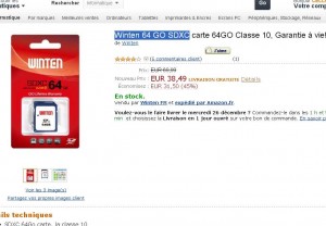 Si vous avez besoin d’une carte mémoire haute capacité pour votre camescope ou appareil photo, une offre qui parait interessante sur amazon .. En effet alors que les cartes SDXC 64go se vendent plutot entre 45 – 70 euros .. sur amazon, on peut en acheter une de classe 10 (donc rapide ) pour 38.49 euros port inclu ..