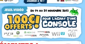 Cdiscount: 100 euros offerts en bon d’achat pour l’achat d’une console de jeux ( ds, xbox, ps3 …) .. dernier jour 21/11