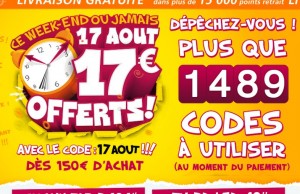 Nouveau code de reduction chez cdiscount : 17AOUT donne 17 euros de remise pour 150 euros d’achats sur le site le 17 aout donc …