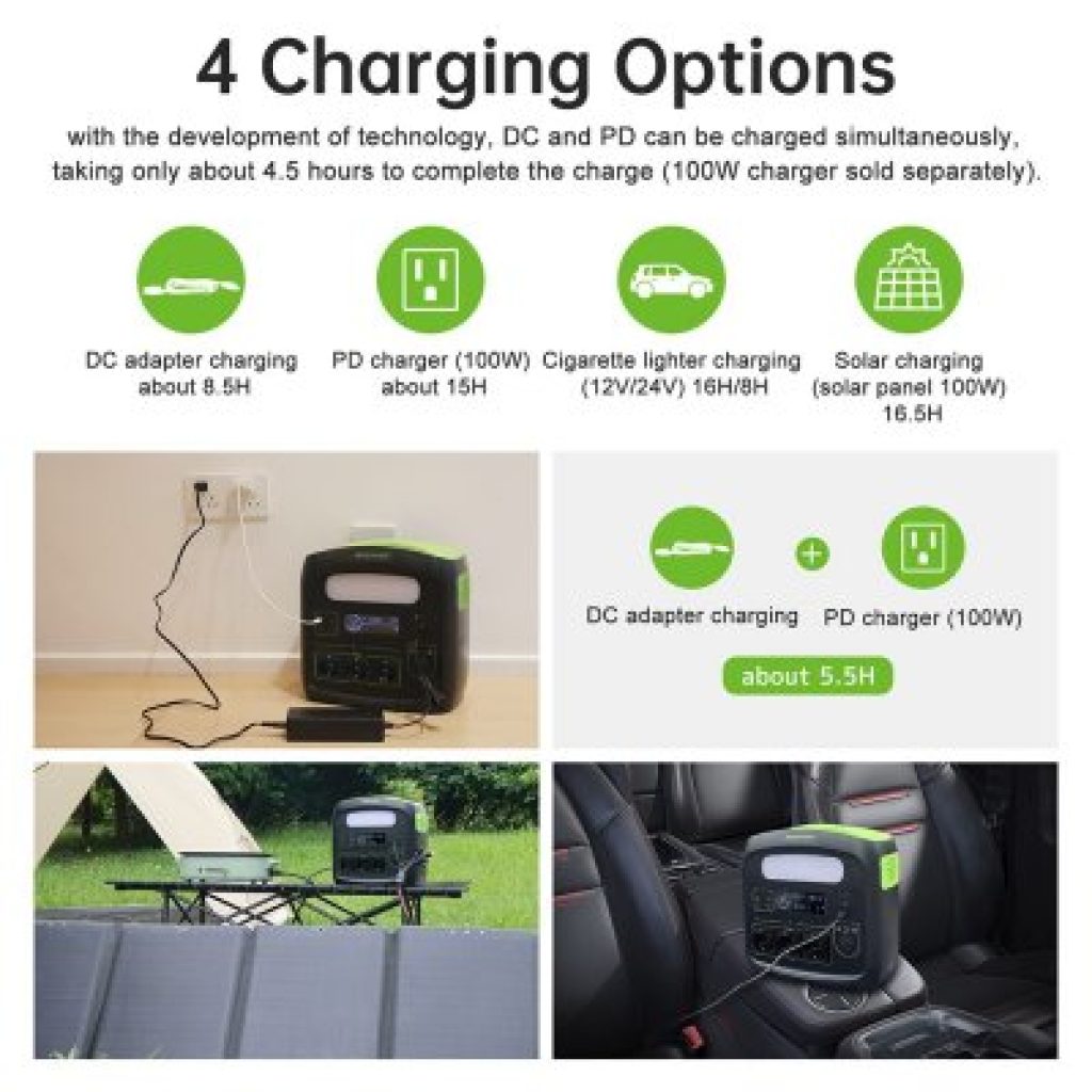 La centrale electrique offre 3 sorties 220 V , des sorties usb , type c , sortie 12V .. On peut la faire charger sur le secteur , sur prise allume cigare , et bien sur avec les panneaux solaires ..