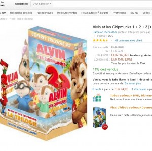 Bon plan en prévision de noel , avec sur amazon des coffrets de dvd avec peluche en vente eclair … Coffrets de films d’animations , avec notamment Alvin et les chipmumks 1-2-3 avec 1 peluche à 14.99 euros (voir ce coffret ), 16.99 euros le coffret intégrale Age de Glace avec une peluche (voir ce coffret) , 12.99 euros un Coffret avec le film les Croods et une peluche (voir ce coffret )
