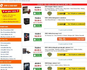 on y trouve ainsi le coffret de l’integrale de la serie le cameleon à 39.99 , le coffret iron man 1 et 2 à 14.55 , le coffrets de dvd du dessin animé Bali à 7.9 euros , dvd pokemon saison 1 et 2 à 9.99 , le coffret sac 4 dvd barbie à 14.99 …. et bien d’autres