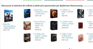 Et on peut donc voir de super affaires : pack 3 films stroumpfs à 9.99€ , 9.49 le pack 3 Hobbits , 15.49€ l’integrale Harry Potter en blu ray , Mad Max anthology à 12€ ….