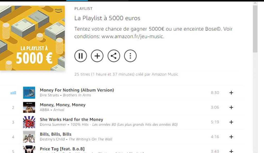 Une playlist qui contient des tubes mémorables mais tous en rapport avec l’argent et la richesse … comme MONEY FOR NOTHING de Dire Straits , Money Money Money d’ABBA , Bills Bills Bills de Destiny’s Child …